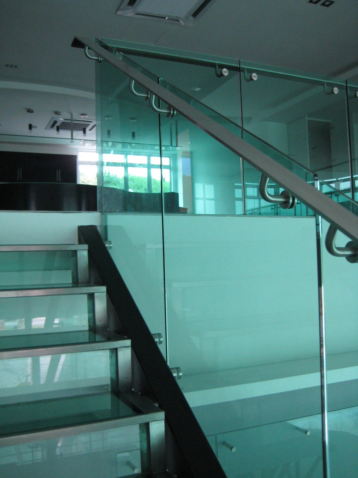 A green tinted glass staircase