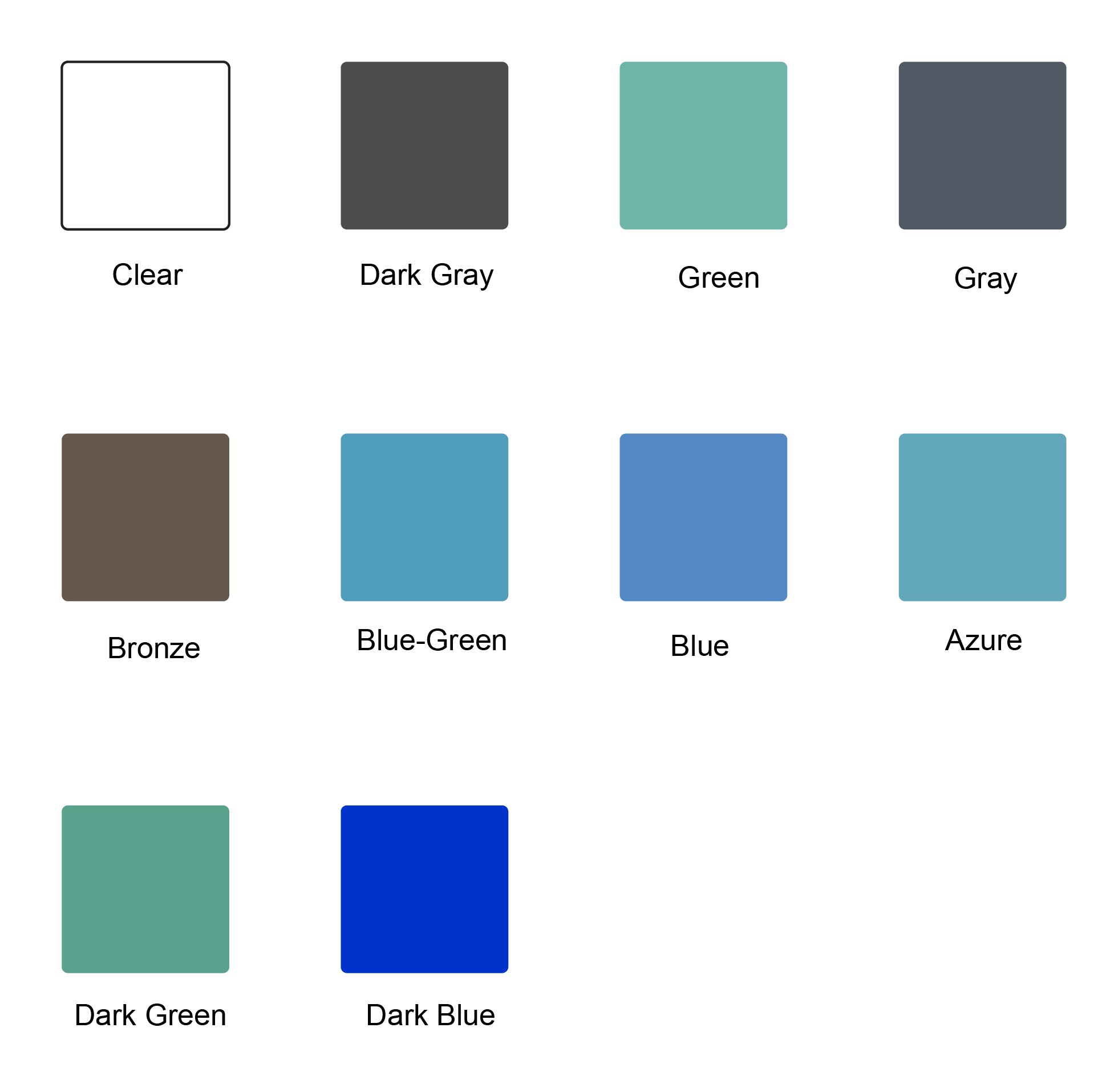 These are the most common tinted glass colors