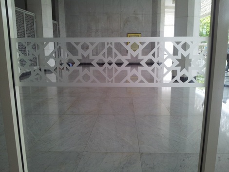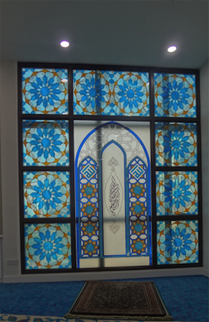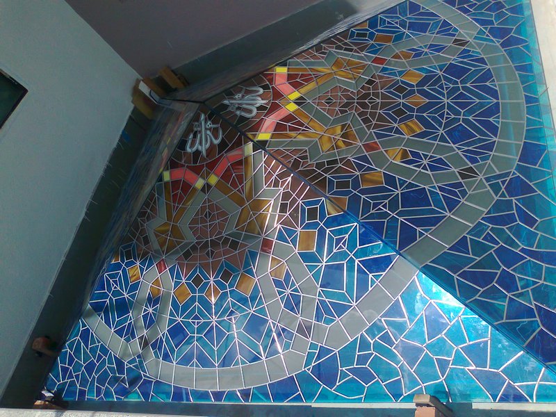 When Islamic motif is edge onto glass and adding colors and stained glass elements , it adds a variety and richness of the decoration. Being symmetrical in design, Islamic motif glass can be viewed on both side of the glass panels.