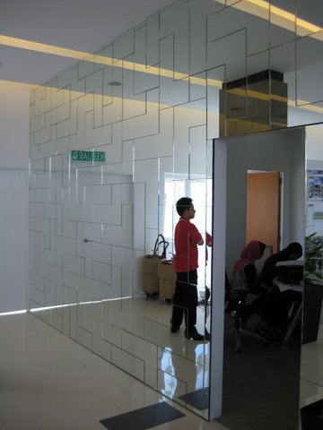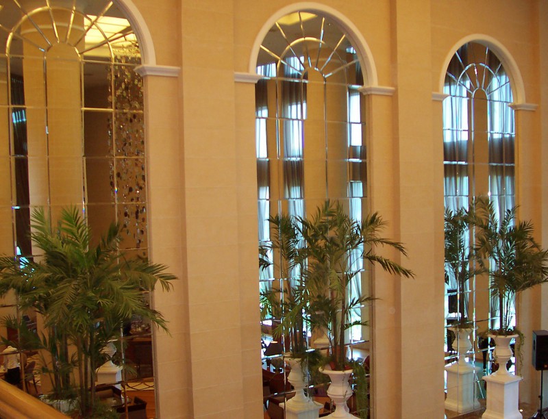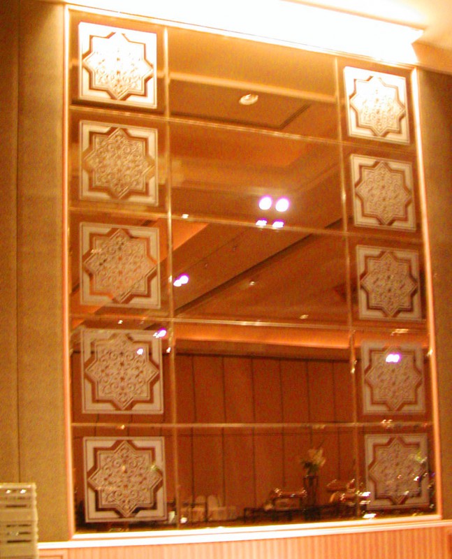 Sandblasted design is etched onto mirror